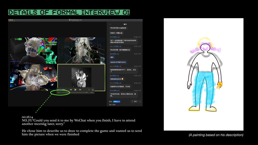 Since we weren't sure if we could contact the Minig members, we did three interview scenarios. The first is to interview the band members directly. We focus on their daily life and friends and family members and hope to increase the interest of the interview and the secrecy of their identity through the "self-portrait" game.